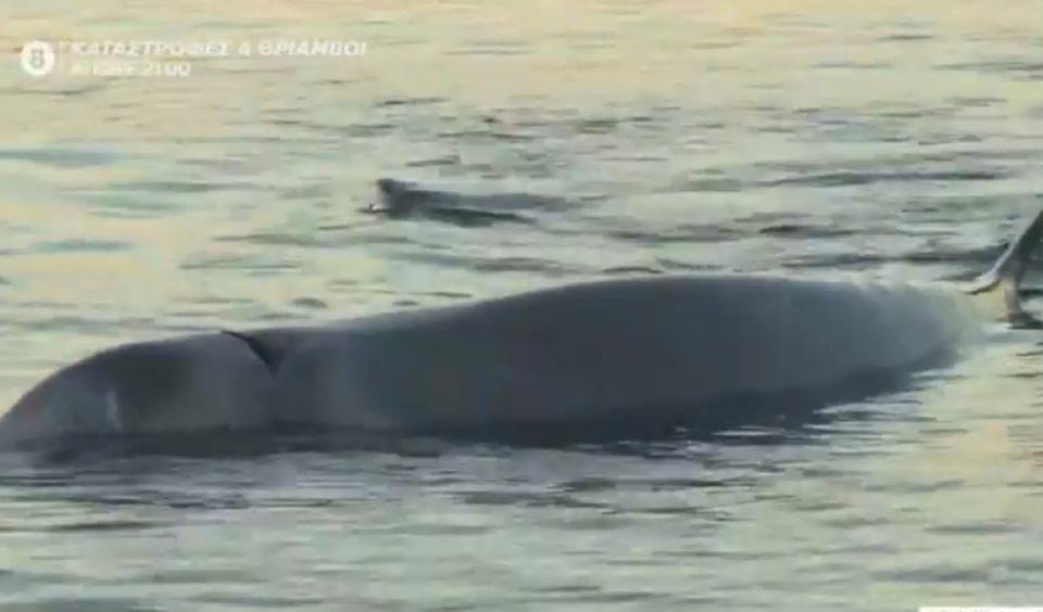 Άρρωστη, πιθανότατα, είναι η φάλαινα που εμφανίστηκε σήμερα το πρωί στην παραλία της Αλίμου, προκαλώντας μεγάλη έκπληξη.