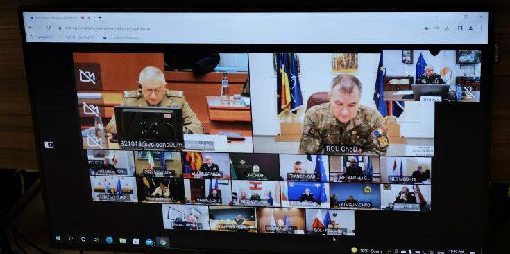 Σε έκτακτη σύνοδο της Στρατιωτικής Επιτροπής της Ευρωπαϊκής Ένωσης (EUMC), η οποία πραγματοποιήθηκε με τηλεδιάσκεψη σε επίπεδο Αρχηγών Ενόπλων Δυνάμεων (ΑΕΔ) των κρατών μελών, συμμετείχε την Παρασκευή ο Αρχηγός της Εθνικής Φρουράς, αντιστράτηγος Δημόκριτος Ζερβάκης.