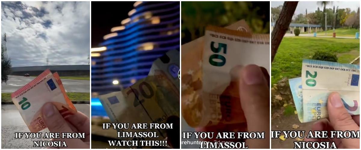 Συγκεκριμένα, ο tiktoker με την ονομασία, treasurehuntercy, βιντεοσκοπεί τη στιγμή που τοποθετεί χαρτονομίσματα σε διάφορα δημοσία γνωστά σημεία, σε Λευκωσία, Λεμεσό ακόμη και Πάφο και μετέπειτα καλεί τους followers του, να τα εντοπίσουν.