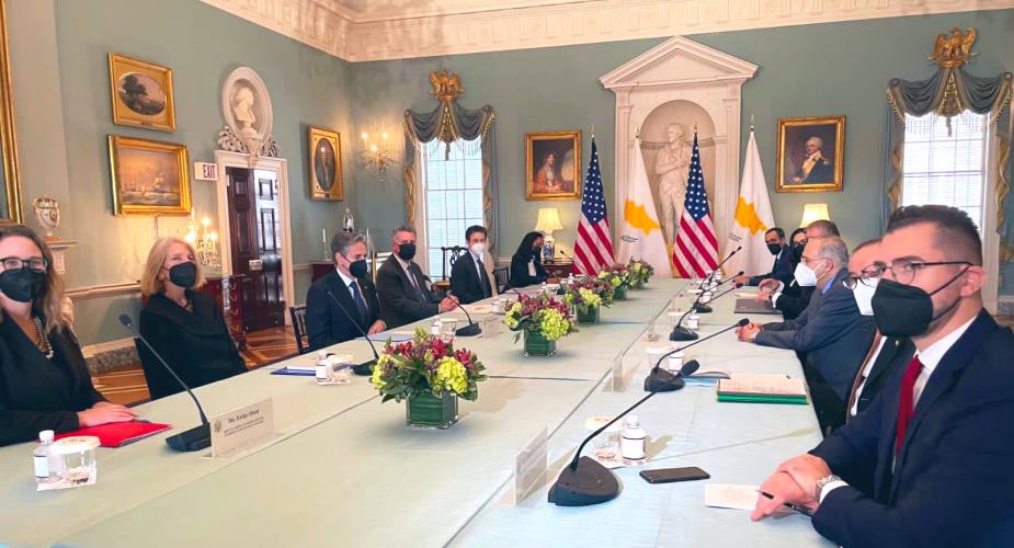 FM @ikasoulides working visit to the #US starts with an excellent meeting at @StateDept with his 🇺🇸counterpart @SecBlinken |