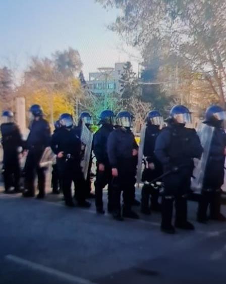 Κατά τη διάρκεια της διαμαρτυρίας, η Αστυνομία απέκοψε δρόμους, ενώ παρευρέθηκε και στην Πλατεία Ελευθερίας.