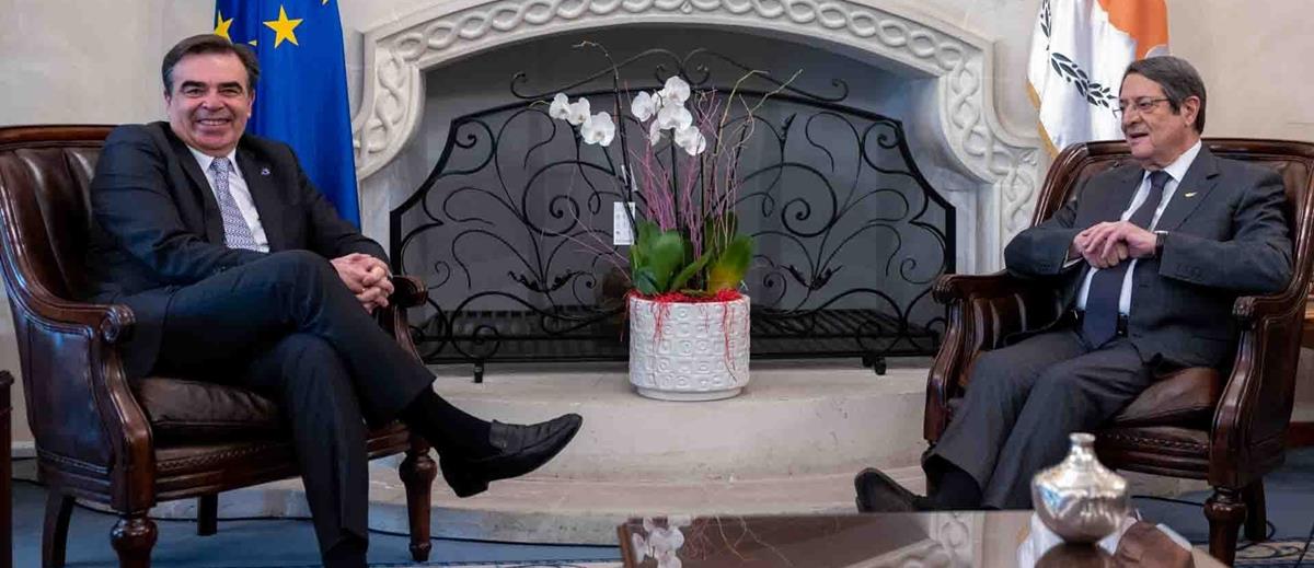 Ο Πρόεδρος της Δημοκρατίας κ Νίκος Αναστασιάδης δέχθηκε σήμερα, στο Προεδρικό Μέγαρο, τον Αντιπρόεδρο της Ευρωπαϊκής Επιτροπής κ. Μαργαρίτη Σχοινά, ο οποίος νωρίτερα, στην παρουσία του Προέδρου, υπέγραψε μαζί με τον Υπουργό Εσωτερικών κ. Νίκο Νουρή, συμφωνία μεταξύ της Κυπριακής Δημοκρατίας και της ΕΕ για το Μεταναστευτικό.