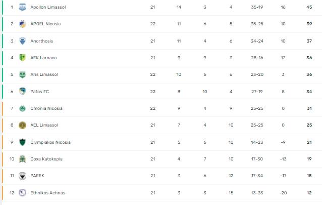 Μετά από τη νίκη του ΑΠΟΕΛ, κλείδωσαν και οι πρώτες έξι ομάδες, με την Πάφο να τερματίζει στην 6η θέση με 34 βαθμούς.