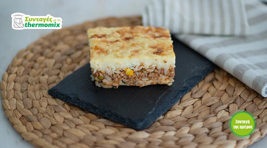 Ρύζι με λαχανικά, κιμά και μπεσαμέλ
