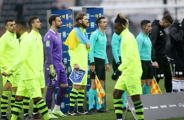 Ο 36χρονος στόπερ του Ιωνικού βγήκε στον αγωνιστικό χώρο της Τούμπας για το ματς με τον ΠΑΟΚ αγκαλιά με μία σημαία της πατρίδας του και έδειχνε συγκινημένος.