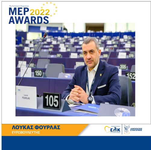 Υποψήφιος για δεύτερη συνεχόμενη χρονιά για το βραβείο «Καλύτερος Ευρωβουλευτής», στη σημαντικότερη κατηγορία, αυτή της Υγείας, είναι ο Ευρωβουλευτής ΔΗΣΥ& ΕΛΚ Λουκάς Φουρλάς.