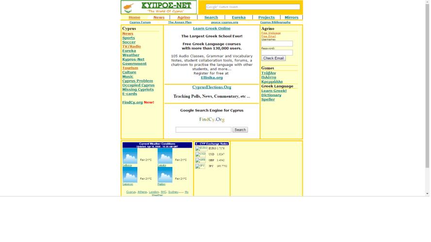 Η σελίδα eureka η οποία αποτελούσε τον συνδετικό κρίκο, καθώς σε βοηθούσε να βρεις ένα φάσμα Κυπριακών ιστοσελίδων γενικού ενδιαφέροντος.