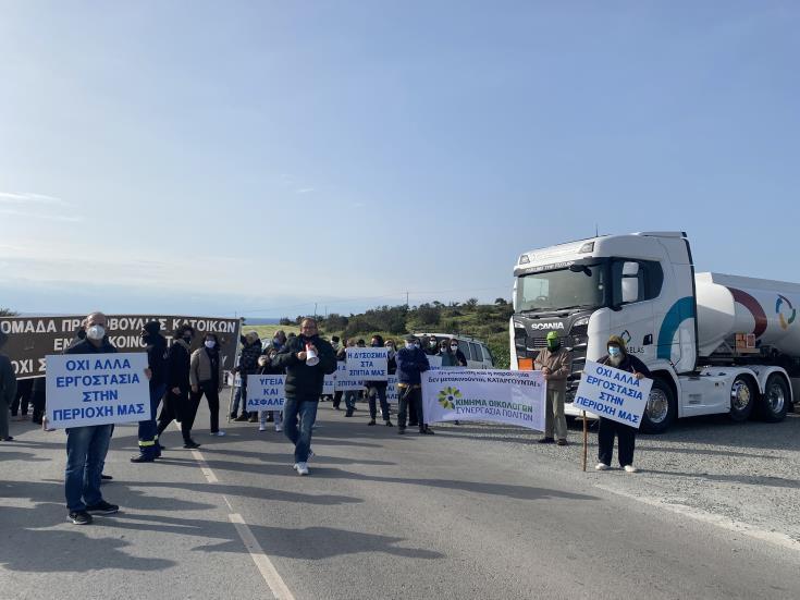 Εκδήλωση διαμαρτυρίας, ενάντια στην απόφαση για μετακίνηση των εργοστασίων στη βιομηχανική περιοχή της Καλαβασού πραγματοποίησαν το πρωί της Δευτέρας οι κάτοικοι της περιοχής, αποκόπτοντας για μιάμιση ώρα τον δρόμο που οδηγεί προς το Ενεργειακό Κέντρο.
