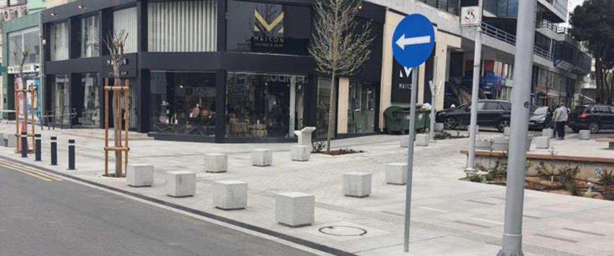 Σημειώνει ότι οι γρανιτένιοι κύβοι στο εμπορικό τρίγωνο έχουν τοποθετηθεί βάσει σχεδιασμού σε συγκεκριμένα σημεία και όχι πάνω ή κοντά σε οδηγούς όδευσης τυφλών για να αποτρέπουν την στάθμευση οχημάτων πάνω σε πεζοδρόμια και να μην παρεμποδίζεται η ελεύθερη διακίνηση όλων, πεζών και ΑμεΑ.