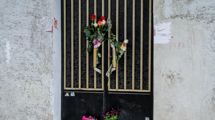 Πολίτες σπεύδουν έξω από την κατοικία της οικογένειας ώστε να αφήσουν λουλούδια και κεριά.