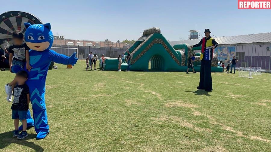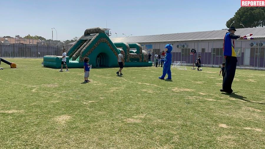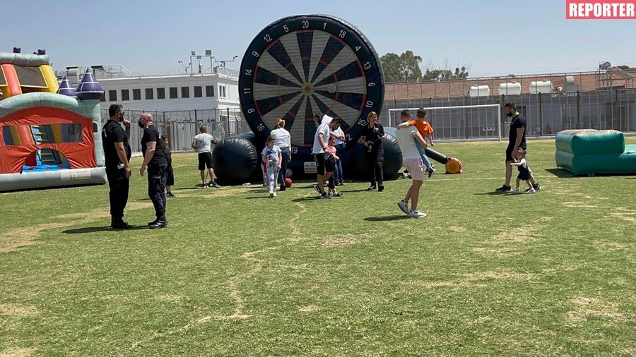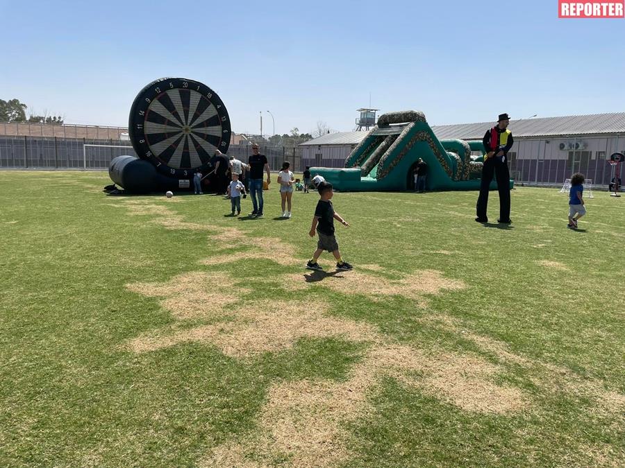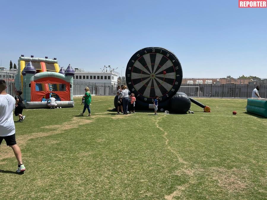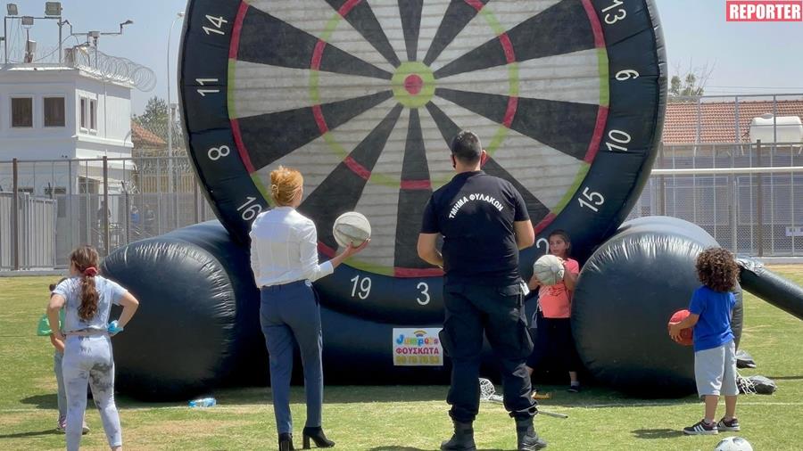 Η Διεύθυνση των Φυλακών είχε ετοιμάσει τον χώρο, ώστε να είναι προσιτός για τα παιδιά και να περάσουν όμορφα. Αυτό που αντικρίσαμε με το που περάσαμε το κατώφλι των Φυλακών και φτάσαμε στο γήπεδό τους, απέναντι υπήρχαν τέσσερα φουσκωτά τραμπολίνα, αλλά και ένα φουσκωτό παιχνίδι στόχου, όπου τα παιδιά πετώντας μπάλες, έπρεπε να πετύχουν όσους περισσότερους πόντους μπορούσαν.