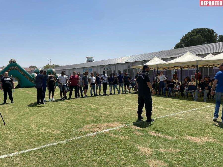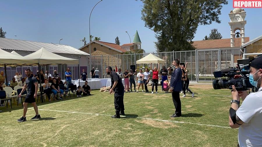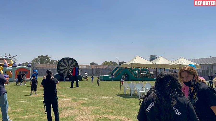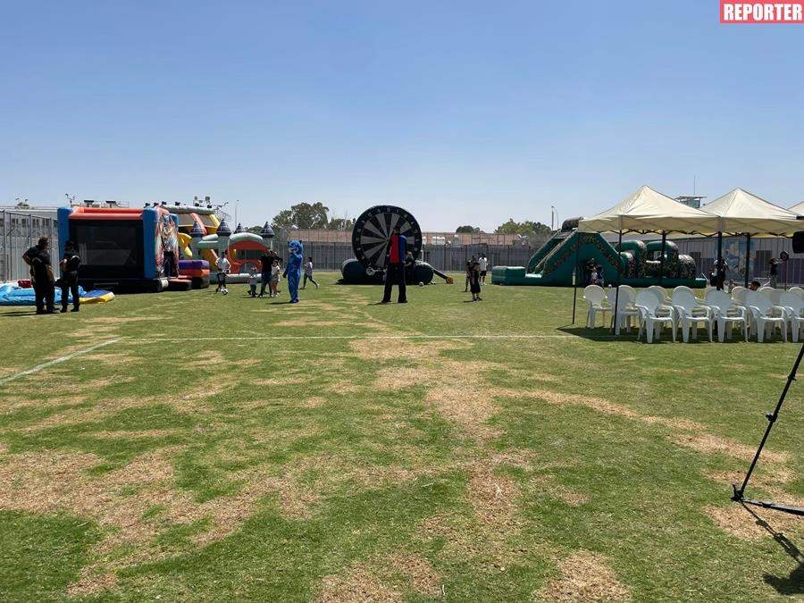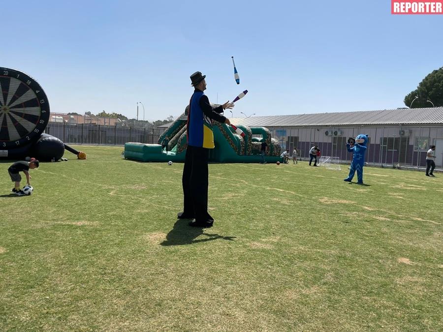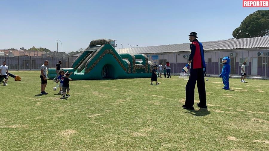 Η Διεύθυνση των Φυλακών είχε ετοιμάσει τον χώρο, ώστε να είναι προσιτός για τα παιδιά και να περάσουν όμορφα. Αυτό που αντικρίσαμε με το που περάσαμε το κατώφλι των Φυλακών και φτάσαμε στο γήπεδό τους, απέναντι υπήρχαν τέσσερα φουσκωτά τραμπολίνα, αλλά και ένα φουσκωτό παιχνίδι στόχου, όπου τα παιδιά πετώντας μπάλες, έπρεπε να πετύχουν όσους περισσότερους πόντους μπορούσαν.