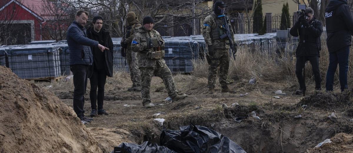 Το Κίεβο κατηγορεί τις ρωσικές δυνάμεις ότι διέπραξαν σφαγές μετά την ανακάλυψη δεκάδων πτωμάτων που φορούσαν πολιτικά ρούχα σε τοποθεσίες γύρω από το Κίεβο κατά την σύντομη κατοχή αυτών από τον ρωσικό στρατό.