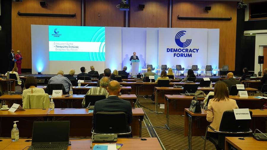 Με στόχο την ανάπτυξη της συζήτησης ανάμεσα στους λήπτες πολιτικών αποφάσεων, τους κοινωνικούς εταίρους και την κοινωνία των πολιτών αναφορικά με τις μεγάλες προκλήσεις που αντιμετωπίζουν οι σύγχρονες δημοκρατίες, η Κύπρος διοργάνωσε την Παρασκευή για πρώτη φορά το Democracy Forum.