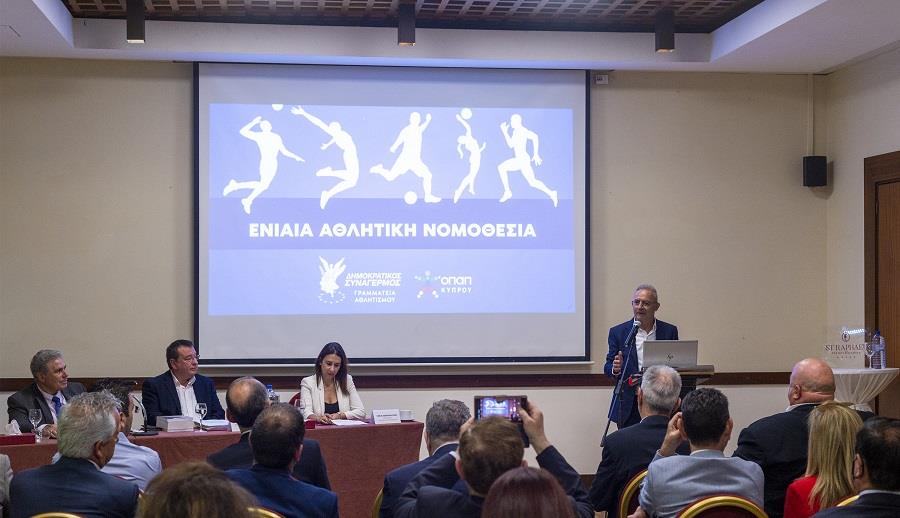 Ο Πρόεδρος του ΔΗΣΥ μιλούσε σε ημερίδα της Γραμματείας Αθλητισμού του ΔΗΣΥ, που διοργανώθηκε στη Λεμεσό με θέμα, «Ενιαία Αθλητική Νομοθεσία», στην παρουσία του Υπουργού Παιδείας, Πολιτισμού, Αθλητισμού και Νεολαίας, του Προέδρου του ΚΟΑ και του Δημάρχου Λεμεσού.