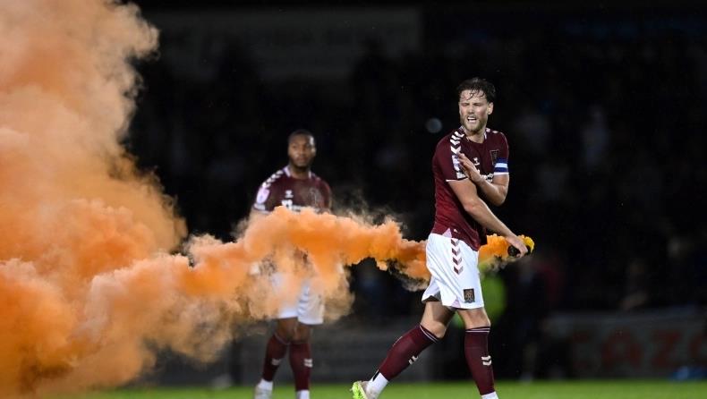 Μερικοί εξ αυτών μάλιστα τα έβαλαν με τους παίκτες της Μάνσφιλντ στους οποίους κι εκτόξευσαν φωτοβολίδες, χωρίς ωστόσο να υπάρξει κάποιος τραυματισμός.