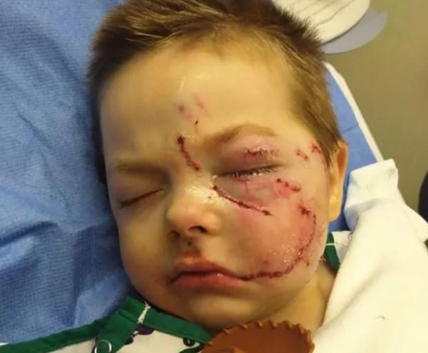 Ο πατέρας του αγοριού, ο 34χρονος Κρίστοφερ, όταν απομάκρυνε το παιδί από τον σκύλο διαπίστωσε ότι του μάγουλο του γιού του ήταν κομμένο.
