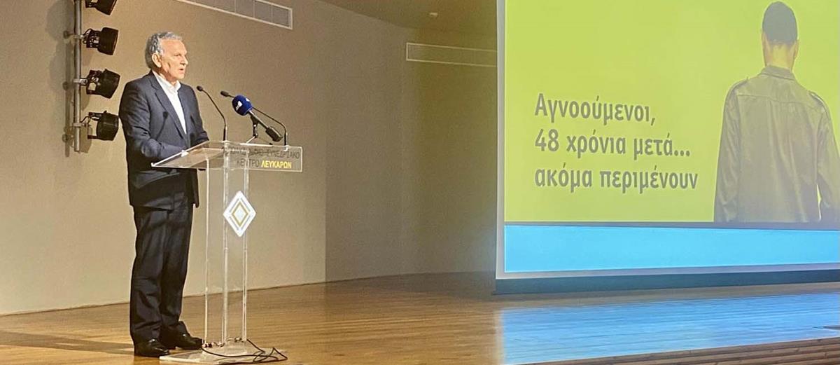 Σε ομιλία του στην Ημερίδα «Αγνοούμενοι, 48 χρόνια μετά...ακόμα περιμένουν», που διοργανώθηκε σήμερα, από την Ακαδημία Ποδοσφαίρου 1619 και την Παγκύπρια Οργάνωση Συγγενών Αδηλώτων Αιχμαλώτων και Αγνοουμένων, στα Λεύκαρα, ο κ. Φωτίου είπε ότι «η διευκρίνιση της τύχης των αγνοουμένων και πεσόντων με πειστικά και αποδεικτικά στοιχεία καθώς και η επιστροφή των λειψάνων στις οικογένειες τους για αξιοπρεπή ταφή, αποτελούσε και αποτελεί ζήτημα ύψιστης σημασίας και προτεραιότητας των εκάστοτε κυβερνήσεων Κύπρου και Ελλάδας».