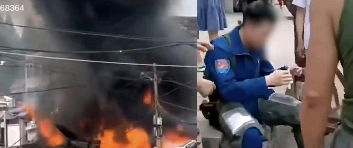 Report: On June 9, Today morning a military plane crashed in Xiangyang, Hubei, causing an explosion and fire.
