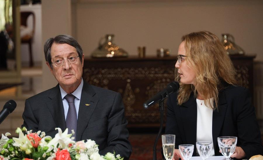 Τη βούλησή του για συνέχιση των προσπαθειών μέχρι και την τελευταία μέρα της θητείας του για επανέναρξη των διαπραγματεύσεων για επίλυση του Κυπριακού, εξέφρασε ο Πρόεδρος της Δημοκρατίας Νίκος Αναστασιάδης κατά την ομιλία του στο γεύμα που παρέθεσε η Πρέσβειρα της Γαλλίας στην Κύπρο Σαλίνα Γκρενέ-Καταλάνο, με την ευκαιρία της λήξης της Γαλλικής Προεδρίας της ΕΕ.