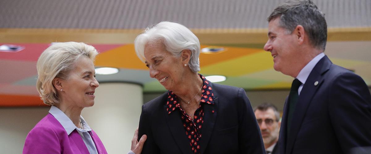 Στη συνάντηση συμμετέχουν και η πρόεδρος της Ευρωπαϊκής Κεντρικής Τράπεζας Κριστίν Λαγκάρντ και ο πρόεδρος του Eurogroup Πασκάλ Ντόναχιου.