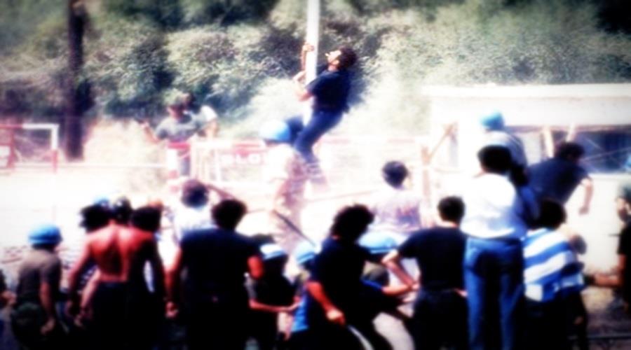 Λίγο μετά τις 2 το μεσημέρι της 14ης Αυγούστου 1996 ο Σολωμός αποτραβήχτηκε από το πλήθος και με ένα τσιγάρο στο στόμα κι αφού κατάφερε να ξεφύγει από τους κυανόκρανους σκαρφάλωσε στον ιστό για να κατεβάσει  την σημαία του ψευδοκράτους.
