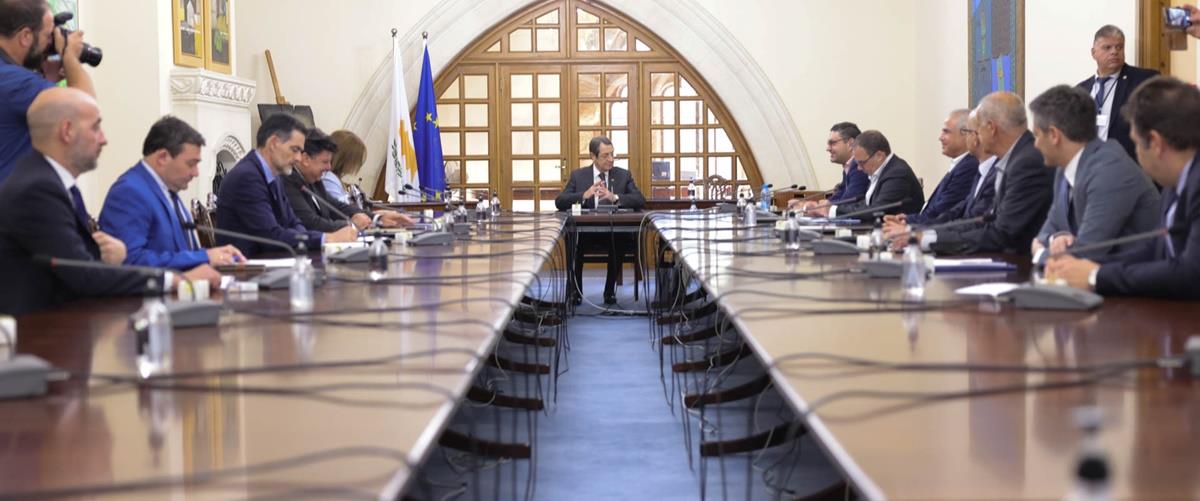 Στη σύσκεψη συμμετείχαν ο Υπουργός Οικονομικών κ. Κωνσταντίνος Πετρίδης, η Υπουργός Ενέργειας, Εμπορίου και Βιομηχανίας κα. Νατάσα Πηλείδου, ο Υφυπουργός παρά τω Προέδρω κ. Πέτρος Δημητρίου και υπηρεσιακοί παράγοντες.