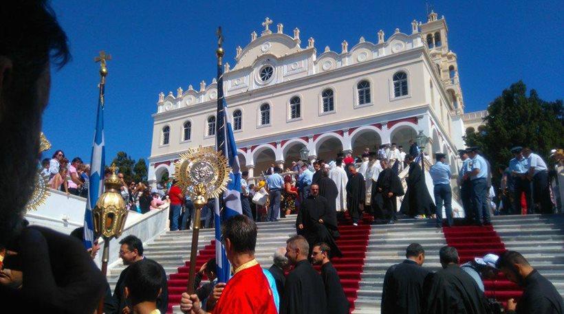 Στην Τήνο βρίσκεται σήμερα, ανήμερα Δεκαπενταύγουστου, ο Υπουργός Εθνικής Άμυνας, Πάνος Καμμένος, ο εκπρόσωπος Τύπου της Νέας Δημοκρατίας, βουλευτής Β΄ Αθηνών, Γιώργος Κουμουτσάκος, και ο πρόεδρος της Ενωσης Κεντρώων, Βασίλης Λεβέντης.