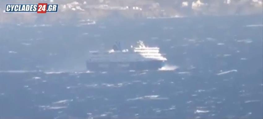 Το cyclades24 δημοσίευσε βίντεο τραβηγμένο από τη στεριά, όπου και φαίνεται η μάχη του καπετάνιου και του πληρώματος απέναντι στις άσχημες καιρικές συνθήκες που επικρατούσαν στη θάλασσε εκείνη την στιγμή.