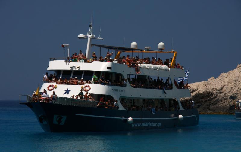Με συνοδεία τριών πλωτών σκαφών του λιμενικού, δύο τουριστικών ημερόπλοιων και δύο ταχύπλοων καταφθάνει αυτή την ώρα στις ακτές της Λευκάδας.