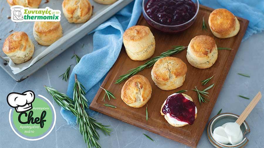 Βάλτε στον κάδο 530 γρ. αλεύρι, 38 γρ. ζάχαρη, 28 γρ. baking powder, 7 γρ. αλάτι, 2 κουταλιές δεντρολίβανο, φρέσκο, μόνο τα φύλλα και αναμείξτε 20 δευτερόλεπτα/ταχύτητα 6.
