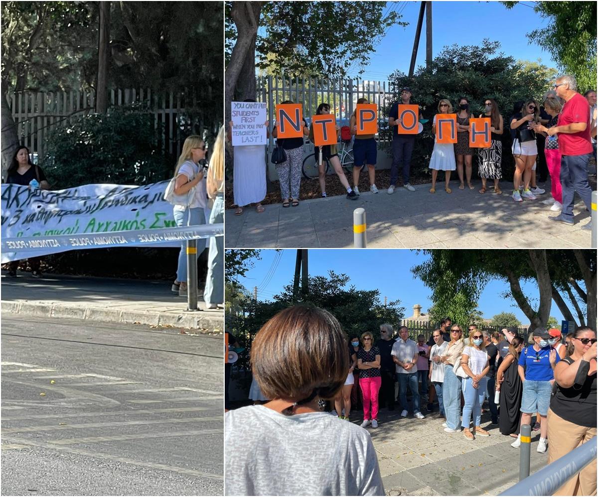 Εκδήλωση διαμαρτυρίας πραγματοποιεί το προσωπικό της Αγγλικής Σχολής για την απόλυση των τριών καθηγητριών του σχολικού ιδρύματος, την ώρα που εντός της Βουλής διεξάγεται συζήτηση στην Επιτροπή Παιδείας της Βουλής.