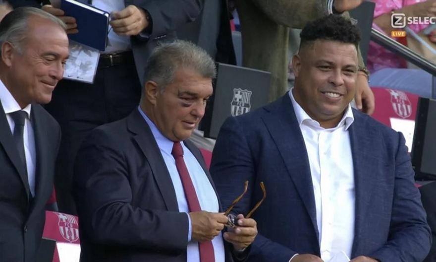 Ο πρόεδρος της Μπαρτσελόνα παρουσιάστηκε λαβωμένος στο παιχνίδι των Καταλανών απέναντι στη Βαγιαδολίδ για την 3η αγωνιστική της La Liga. Το οποίο παρακολουθεί με τον ισχυρό άντρα των φιλοξενούμενων και άλλοτε άσο της «Μπάρτσα», Ρονάλντο.