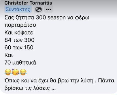 Σε ανάρτησή του, αναφέρει ότι ζήτησε να αγοραστούν 300 εισιτήρια διακρείας, για να φέρει καλό τερματοφύλακα, ωστόσο δεν έφθασαν το στόχο οι φίλοι της ομάδας. Είπε όμως ότι θα βρει τη λύση.