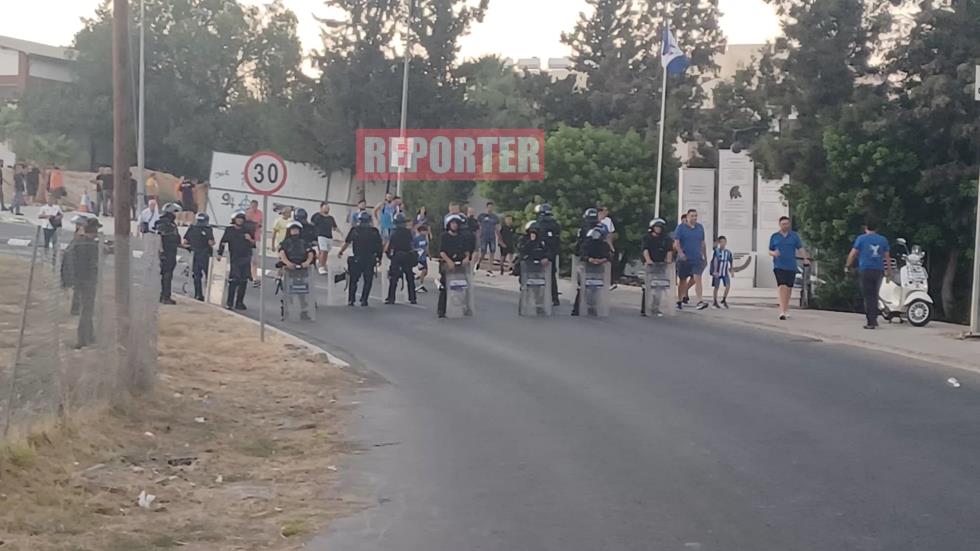 Πάνοπλα μέλη της Δύναμης, βρίσκονται από νωρίς στο γήπεδο και έλαβαν δρακόντεια μέτρα ασφαλείας, τοποθετώντας προστατευτικά κιγκλιδώματα για να μην μπορέσουν οι οπαδοί των δύο ομάδων να συναντηθούν.