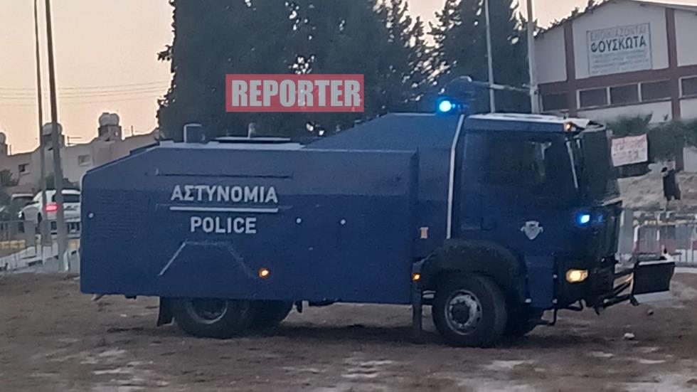 Παράλληλα, στο χώρο βρίσκεται και το αντιοχλαγωγικό όχημα Αίαντας της Αστυνομίας, σε περίπτωση που χρειαστεί.
