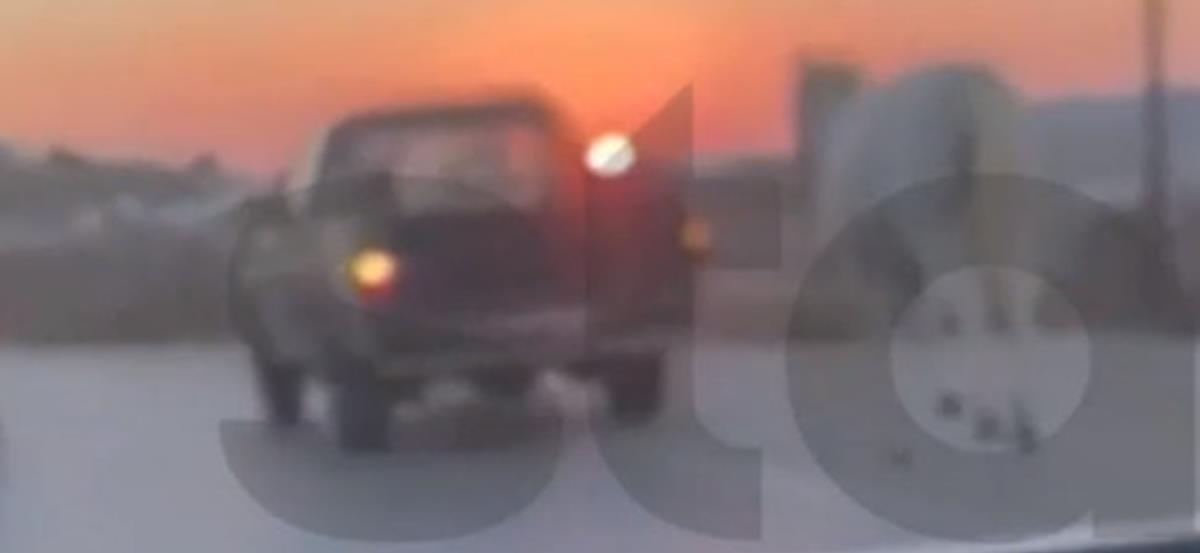 Όπως φαίνεται στο βίντεο, το άλογο τρέχει λαχανιασμένο και ο οδηγός του αγροτικού αυτοκινήτου που το είχε δέσει στο πίσω μέρος γκαζώνει.
